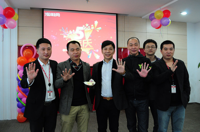11月21日上午,淘鞋網五周年慶典在公司本部隆重召開,董事長王冬竹、總經理涂榮標出席參加本次慶典并致辭。