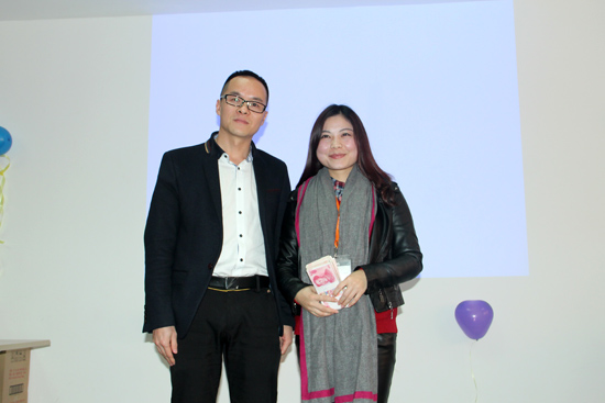 最先揭曉的是銷售組業績突破獎,林麗娟、毛錄智、曾小云三位小伙伴們,原來是最先出場的男神女神。