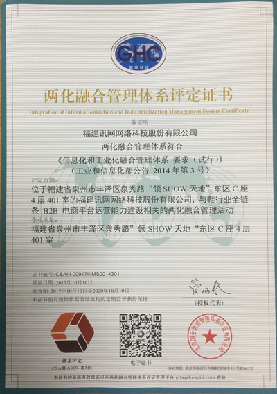 訊網網絡自導入兩化融合體系,公司以打造“互聯網+鞋業”新型發展模式為動力,從戰略層面出發,全面推動產業結構調整和轉型升級,進一步推動信息化與公司運營發展的深度融合,不斷提升和改善兩化融合管理模式,持續打造與戰略匹配的信息化環境下的新型能力,保持可持續競爭優勢。