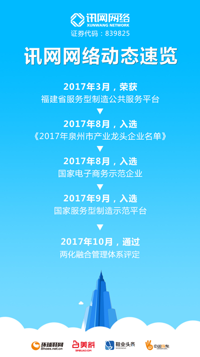 訊網網絡早在2002年成立之初,就著手信息化建設,先后幫助企業搭建云建站,布局移動端。2004年開始,為鞋行業搭建“全鏈條 B2B 電商平臺”,為企業提供線上推廣,線下營銷等服務形式,助力制造型企業轉型升級,實現工業化與信息化的融合發展。
