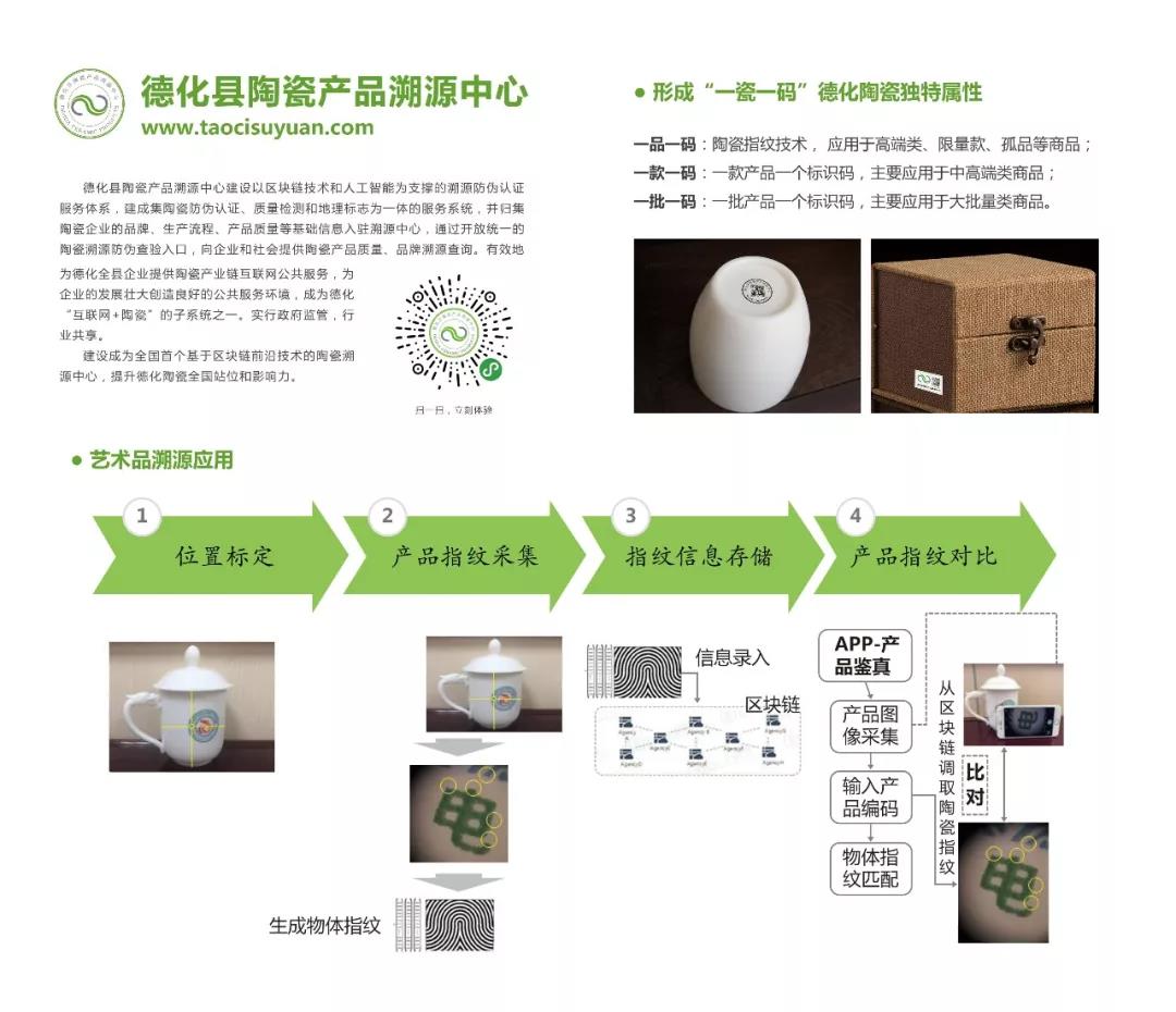 訊網網絡旗下平臺“愛陶瓷”,通過引進電子商務交易技術國家工程實驗室,全面打造陶瓷產業生態2.0;在商業模式上實施全息化、社交化理論,初步實現全息化商品/原材料、全息化企業、全息化消費者,實現了企業生產過程可視化,并以社交化為商業基礎,打造線上、線下一體化的新零售模式;在區塊鏈的運用上,已經與德化縣市場監督管理局合作開發了基于區塊鏈技術的可視溯源系統及指紋防偽技術。