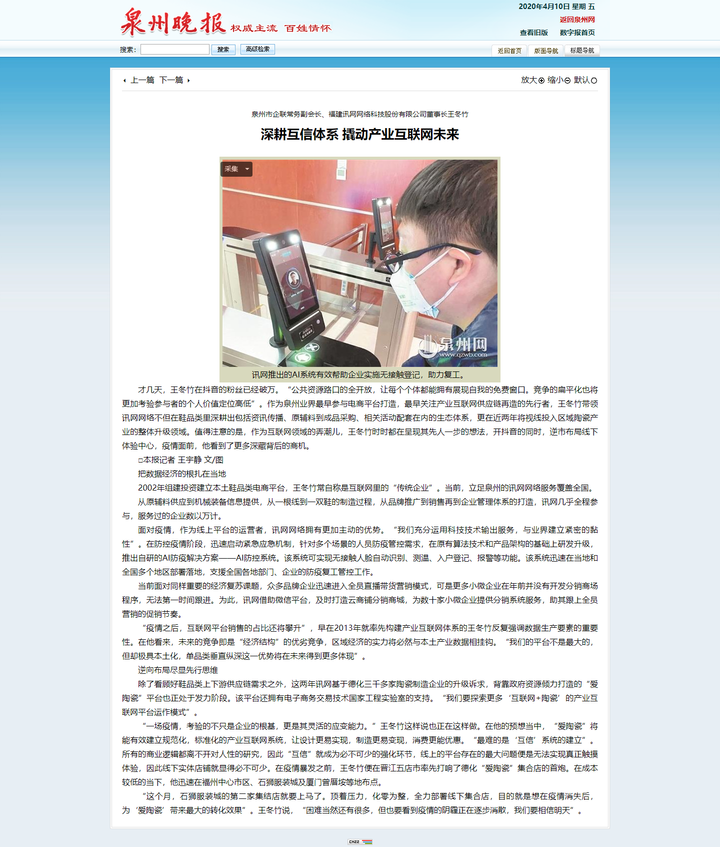 泉州晚報|王冬竹:深耕互信體系 撬動產業互聯網未來