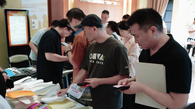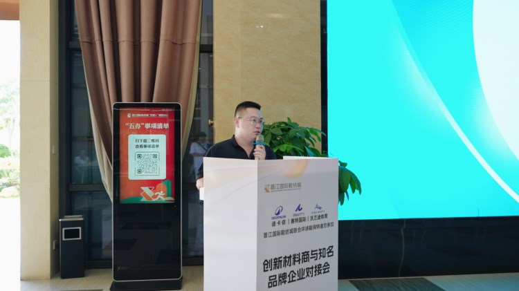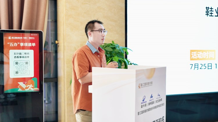“創新材料商與知名品牌對接會暨鞋業好物市集第二站-晉江國際鞋紡城站”(以下簡稱“對接會”)于晉江國際鞋紡城舉辦,本場對接會由環球鞋網與晉江國際鞋紡城聯合主辦。福建晉江鞋紡城有限責任公司總經理李宵還、陳埭鞋材商會會長丁鶴鳴、迪卡儂鞋部創新項目Orange.Chen(女士)與Jello.Huang、賽特國際總經辦副總經理彭東、產品中心材料規劃師田風領、研創部首席技術專家王淵博、沃蘭迪品牌創始人周健及其總經理童希、海泰客(廈門)品牌管理有限公司執行董事張煒,以及來自廣州、杭州、臺灣等全國各地的創新材料商共同參與了此次盛會。