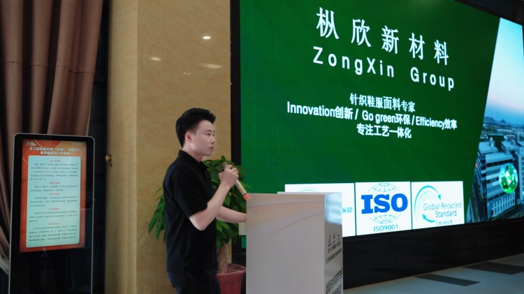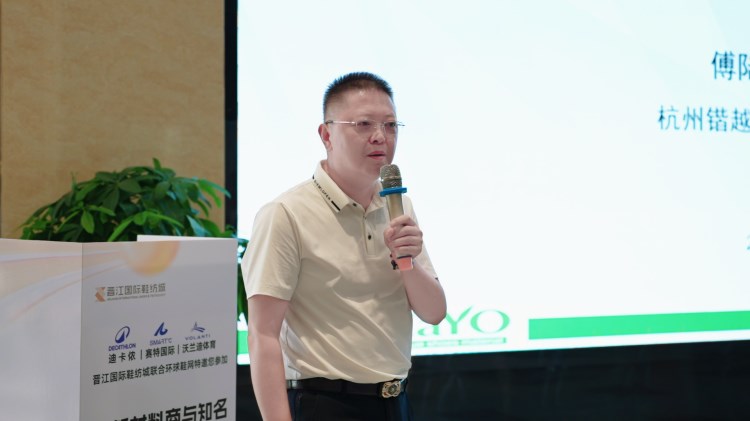 福建省晉江市三盈鞋材有限公司代表進行了題為“高耐黃、久擺放、無苯酚低voc環保海綿研發匯報”的主題演講,展示了三盈鞋材的最新研究成果,并根據品牌方需求推介了復合、領口、鞋墊等多種海綿產品。