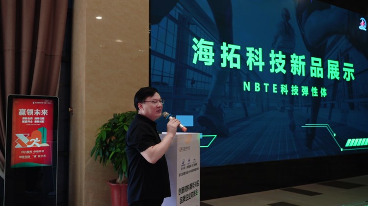 泉州海拓新材料科技有限公司代表進行了“海拓科技新品展示——NBTE科技彈性體”的主題演講,展示了NBTE科技彈性體在結構與性能方面的優勢,并詳細剖析了其在大底、鞋墊等各類鞋業應用中的優秀案例。