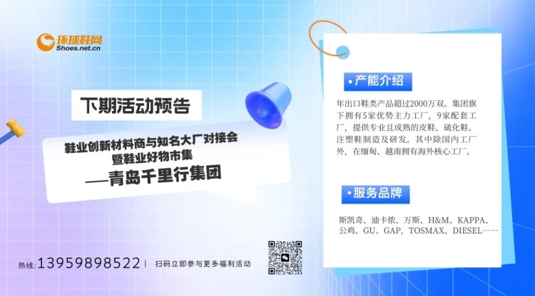 創新材料商與知名品牌對接會暨鞋業好物市集作為環球鞋網繼鞋業盛典外又一創新型服務,旨在搭建一個集新材料、新工藝、新設備與知名品牌/大廠等多方融合的一站式公共交流服務平臺。