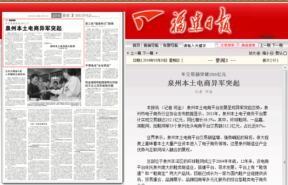 • 福建日?qǐng)?bào):泉州本土電商異軍突起