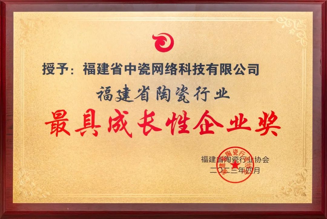 福建省陶瓷行業最具成長性企業獎,中瓷網絡再添新榮譽